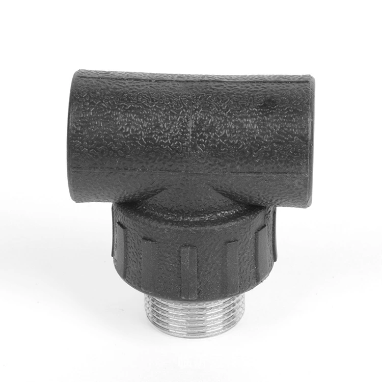 Samové závitové odpaliště HDPE se rozdělí nebo kombinuje průtok v potrubních systémech. Poskytuje také mužský závitový port pro připojení k kovovým nebo plastovým dílům. Jedna větev má mužské nití; Další dva se připojují k HDPE mužskému tričku pro hybridní připojení pomocí komprese nebo fúze. Vytváří větve potrubí, drží senzory nebo přidává ventily. Konstrukce tvoří spolehlivé těsnění bez roztavených kloubů.